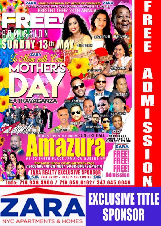 Mother’s Day Extravaganza 2018 Date:2018-05-13 Time:3PM Location:91-12 144th Place Jamaica Queens NY Venue:Amazura Concert Hall FREE EVENT