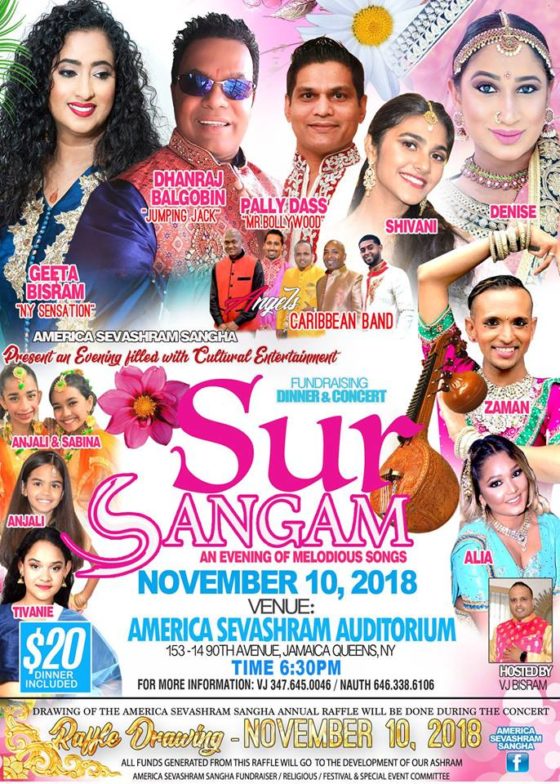 Sur Sangam 2018 Date:2018-11-10 Time:7pm Location:Jamaica New York Venue:America Sevashram Sangha Auditorium